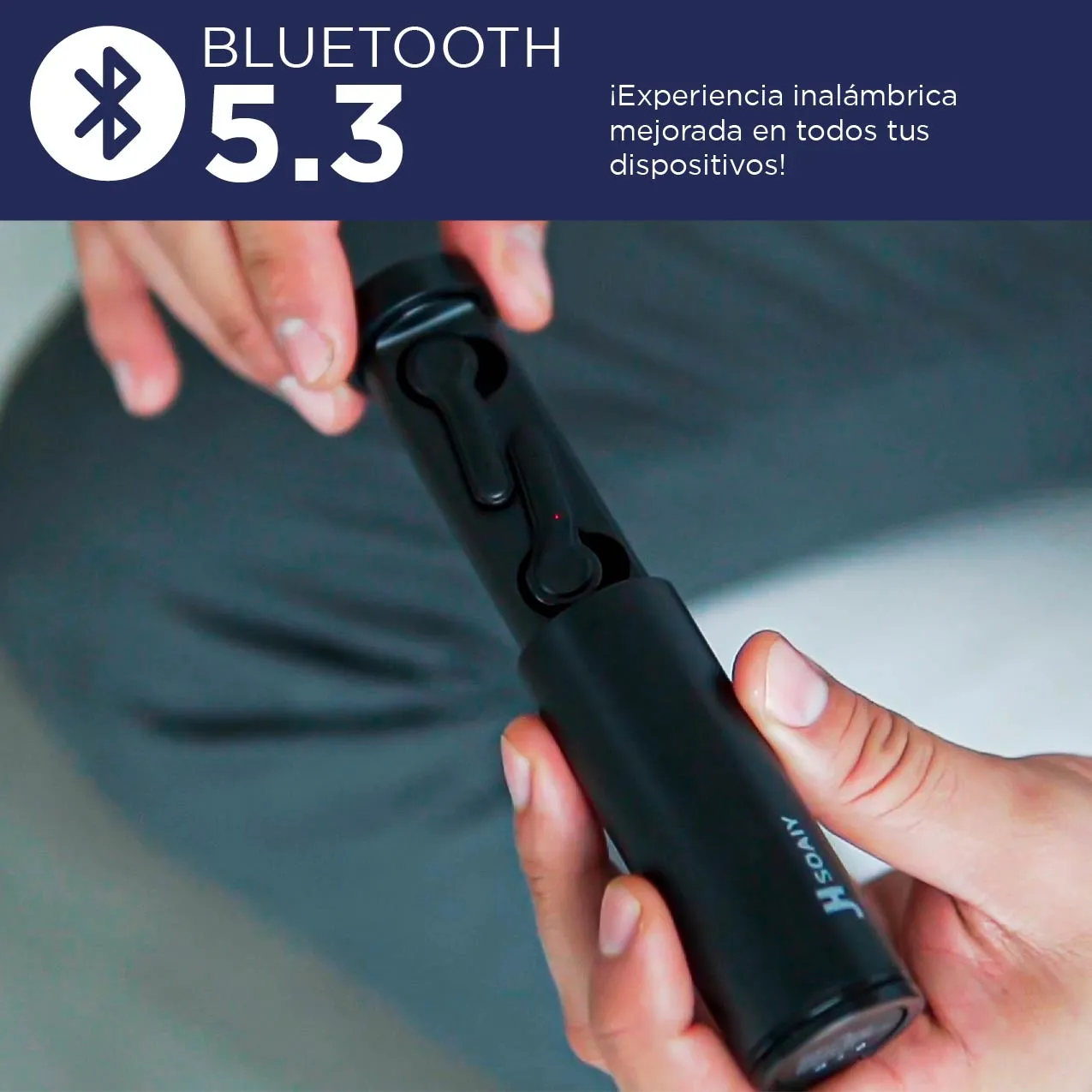Sumérgete en el ritmo con los JH Soaiy T26B, audífonos Bluetooth con diseño innovador, conexión ininterrumpida y estuche de carga original para disfrutar de tu música en movimiento.