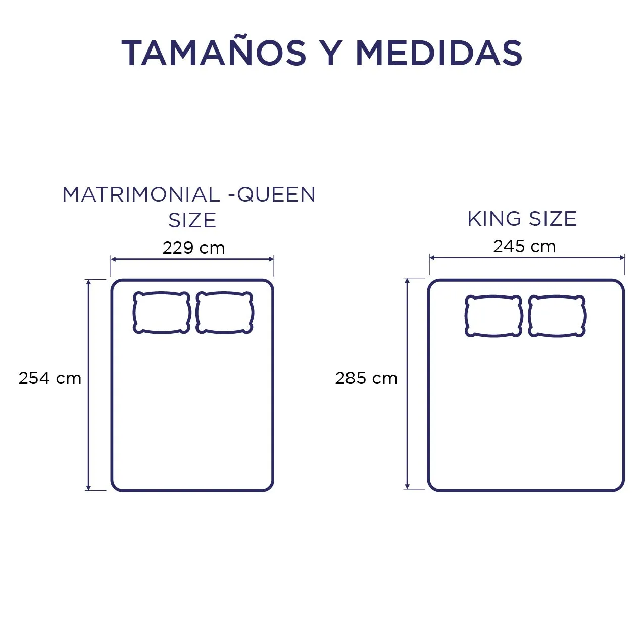 King Size (285x245cm) ,Matrimonial – Queen (254x229cm) |