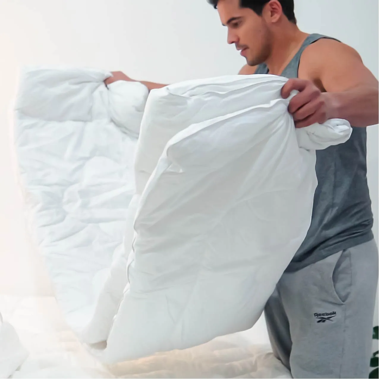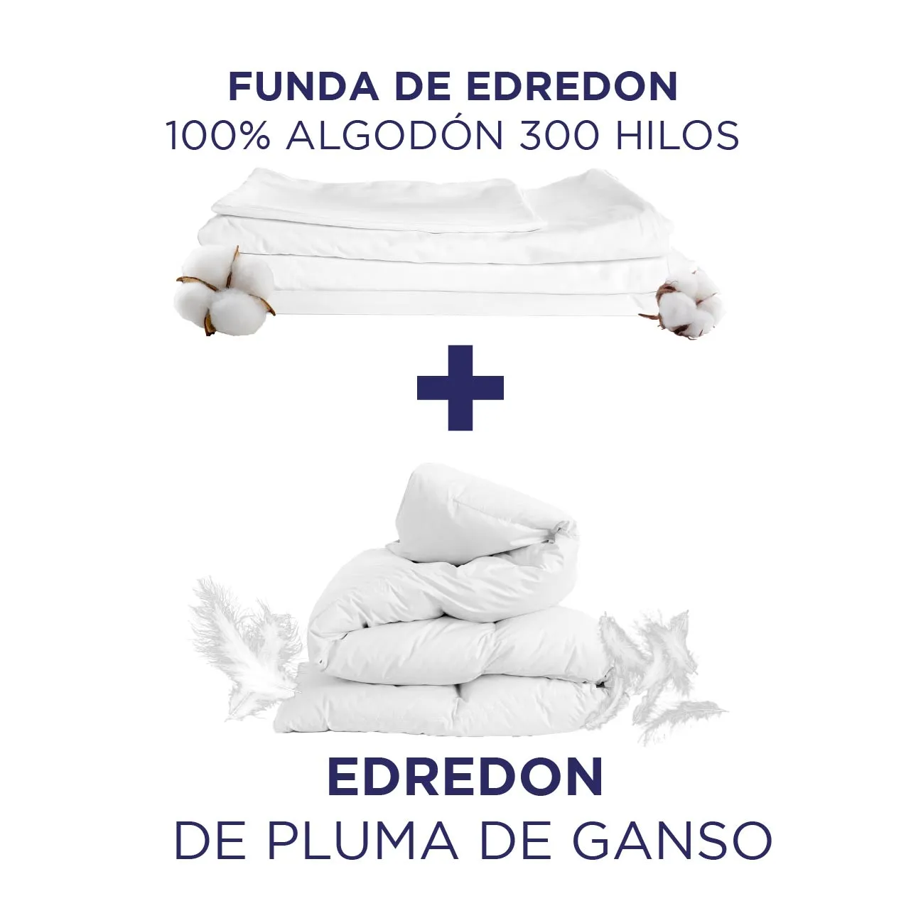 Kit Funda 100% Algodón + Relleno de Edredón Pluma de Ganso (300 hilos)