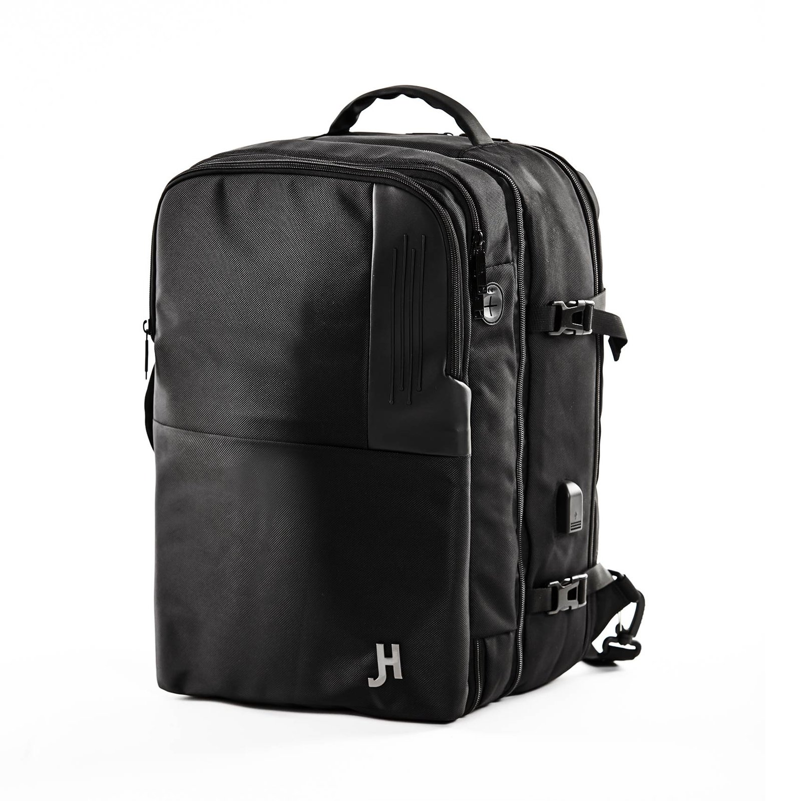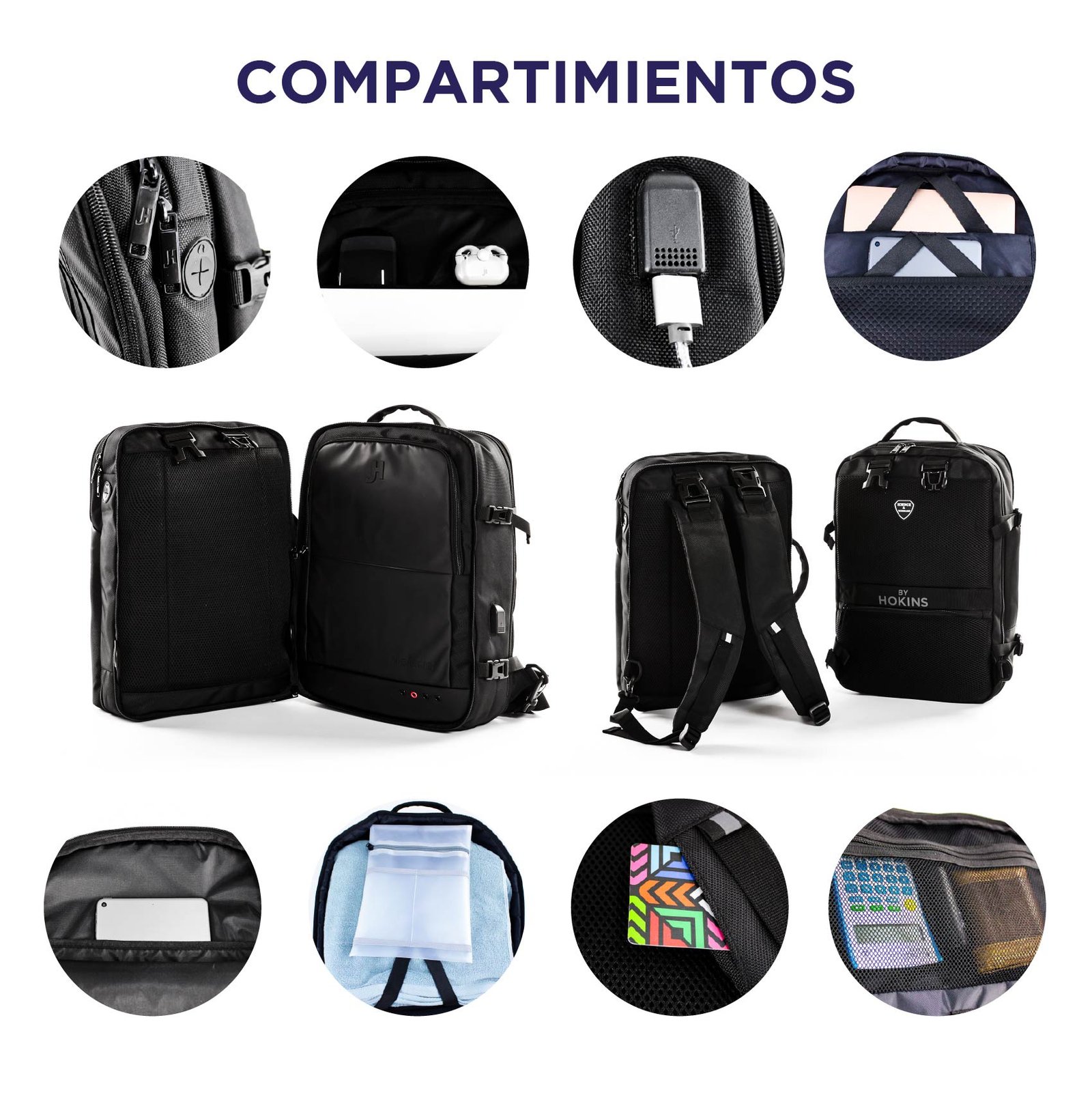 Conectividad y Seguridad: Mantén tus dispositivos cargados y a salvo con nuestro sistema de puerto USB integrado y cable de carga interno (banco de energía no incluido). Además, un bolsillo antirrobo discretamente ubicado en la parte posterior asegura tus objetos de valor. Viaja con la tranquilidad de que tus pertenencias están protegidas y siempre listas para usarse.