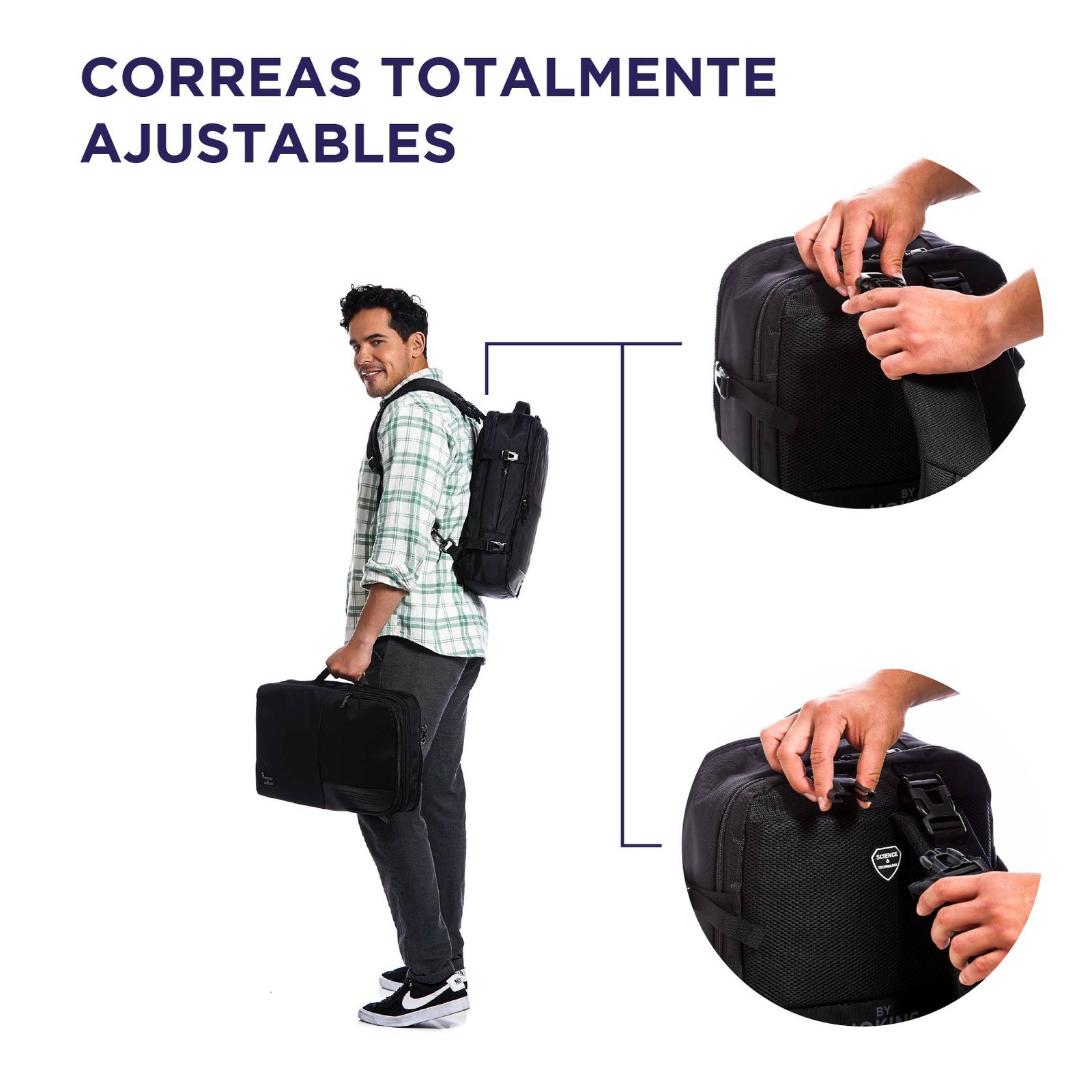 Comodidad y Flexibilidad con Correas de Hombro Desmontables: Nuestra mochila no solo se adapta a tus necesidades, sino que también ofrece un confort excepcional. Las correas de hombro son ajustables y se pueden ocultar, transformando tu mochila en un elegante maletín ejecutivo o en una bolsa de viaje compacta. Su diseño modulable te permite personalizar la mochila según tus necesidades del momento.