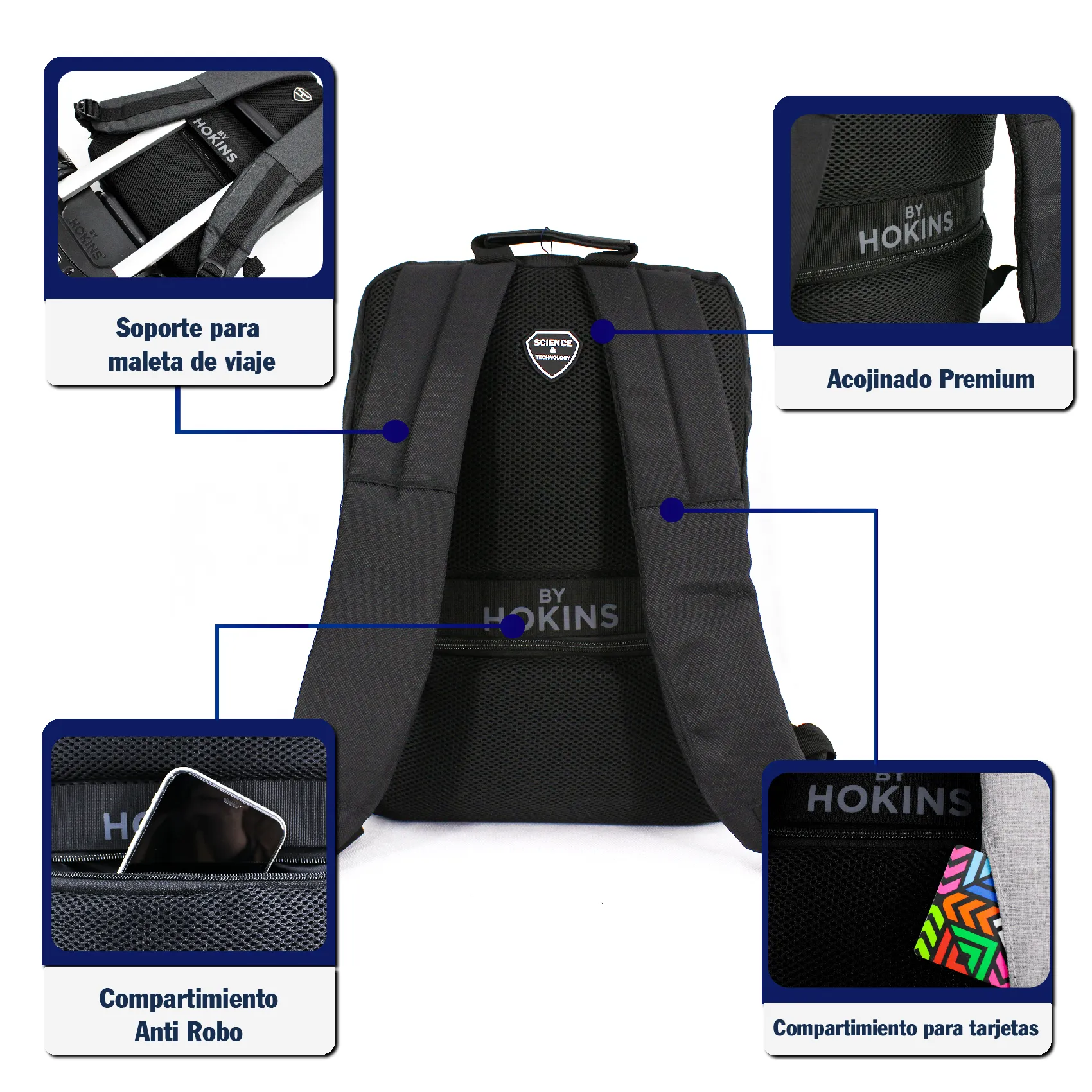 Diseño Listo para Viajar: Viaja con mayor facilidad utilizando la correa de sujeción integrada para equipaje, permitiéndote fijar la mochila a tu maleta. Ideal para moverse cómodamente por aeropuertos y estaciones.